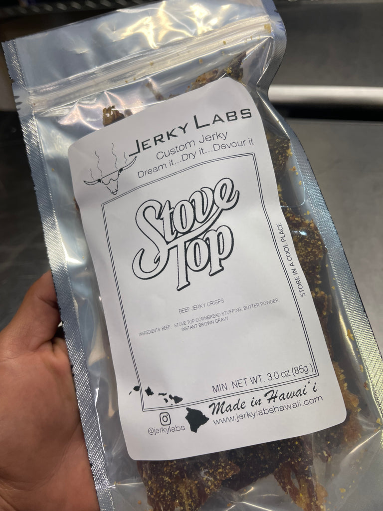Just in time for that Thanksgiving turkey our Stove Top uses the famous stuffing mix to capture that unforgettable holiday side dish on our crispy beef jerky. The breadcrumbs in this recipe give every chip an extra crunch and reminiscent flavor of Thanksgiving. Be sure to get this while it lasts, because it will only be around for the Holidays!
